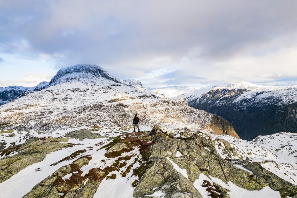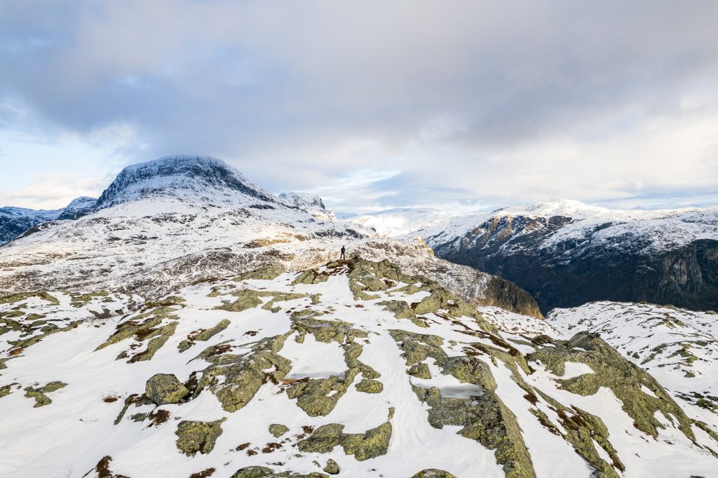 Once there, it turned out that the mountain peaks were already covered with a layer of snow. Who would have guessed? Hello, it’s December after all, I should have planned for this ahead of time. So, I decided to choose a smaller mountain in Ulvik. Kinsarvik and Husedalen were already eliminated from the potential options because, due to the national park boundaries, using a drone wasen’t allowed there.