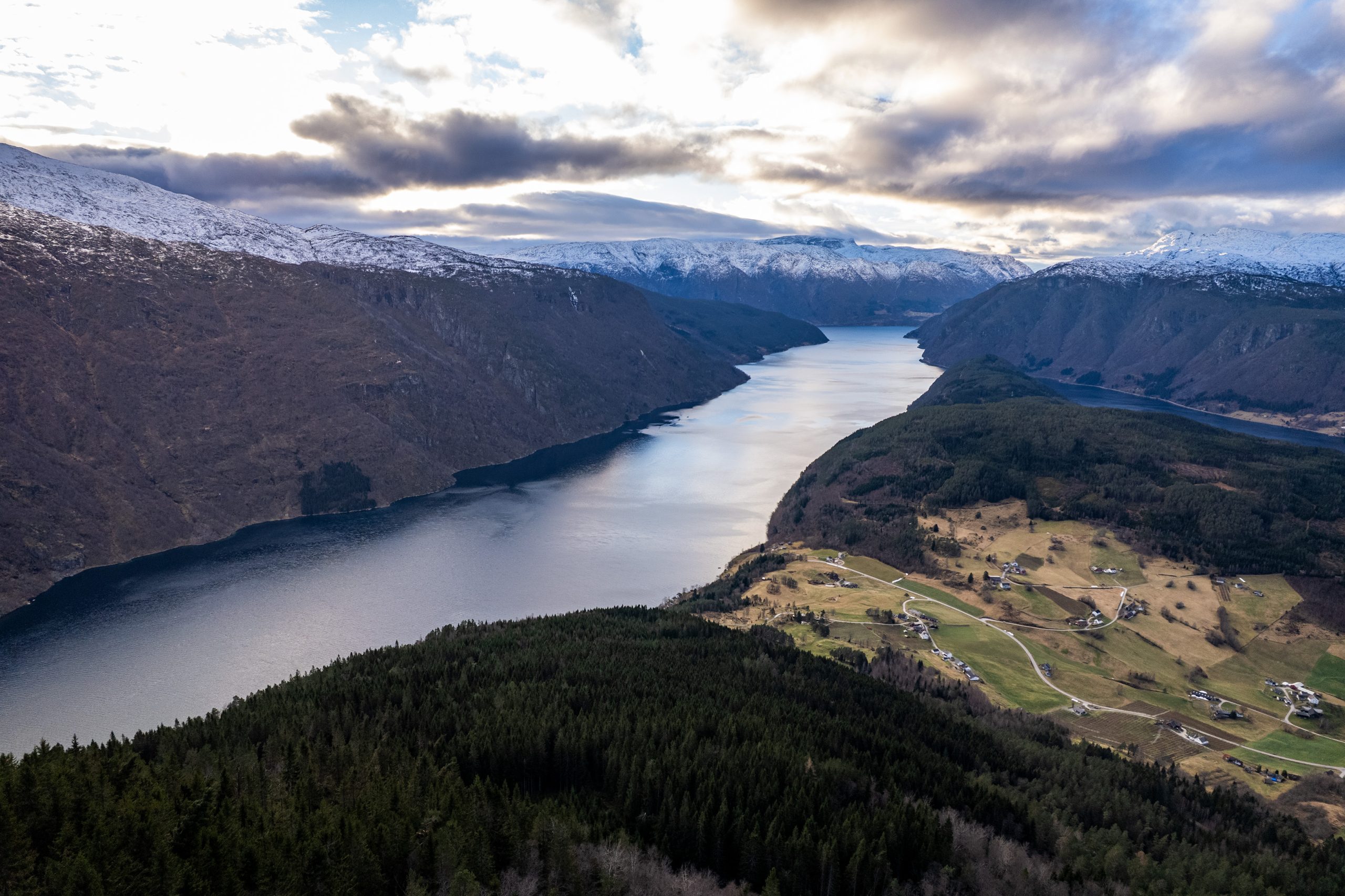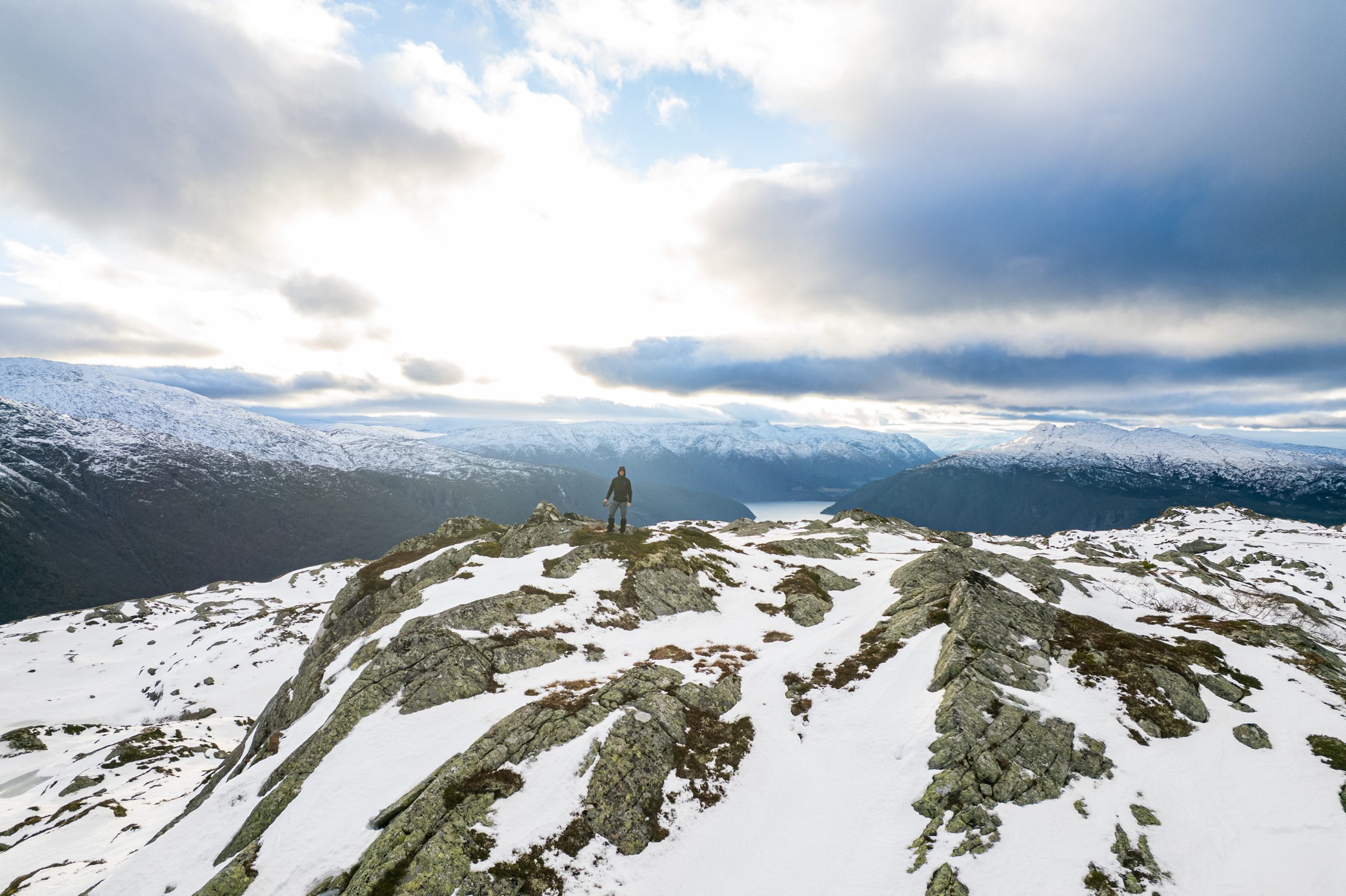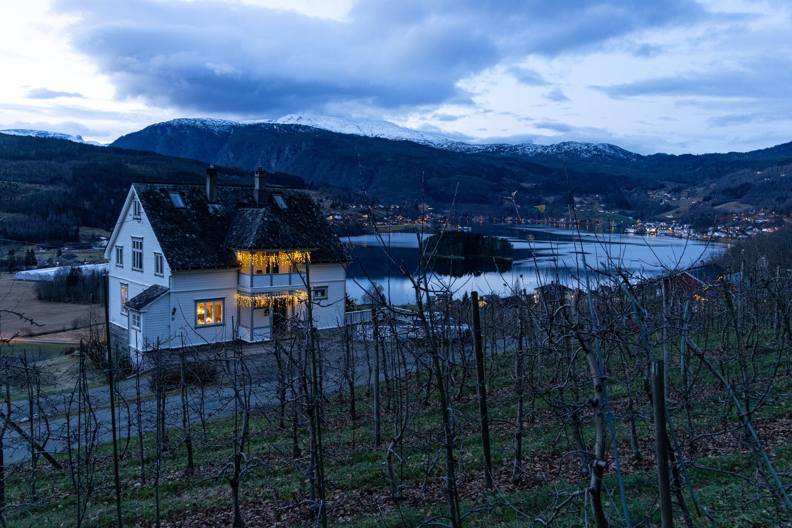 Na miejscu okazało się, że szczyty gór pokryte są już warstwą śniegu. No kto by się spodziewał. Helloł, mamy w końcu grudzień, trzeba było to przewidzieć wcześniej. Postanowiłem zatem, że wybiorę mniejszą górkę w Ulvik. Kinsarvik i Husedalen odpadło z potencjalnych wyborów już wcześniej bo ze względu na granice parku narodowego, nie można było tam latać dronem.