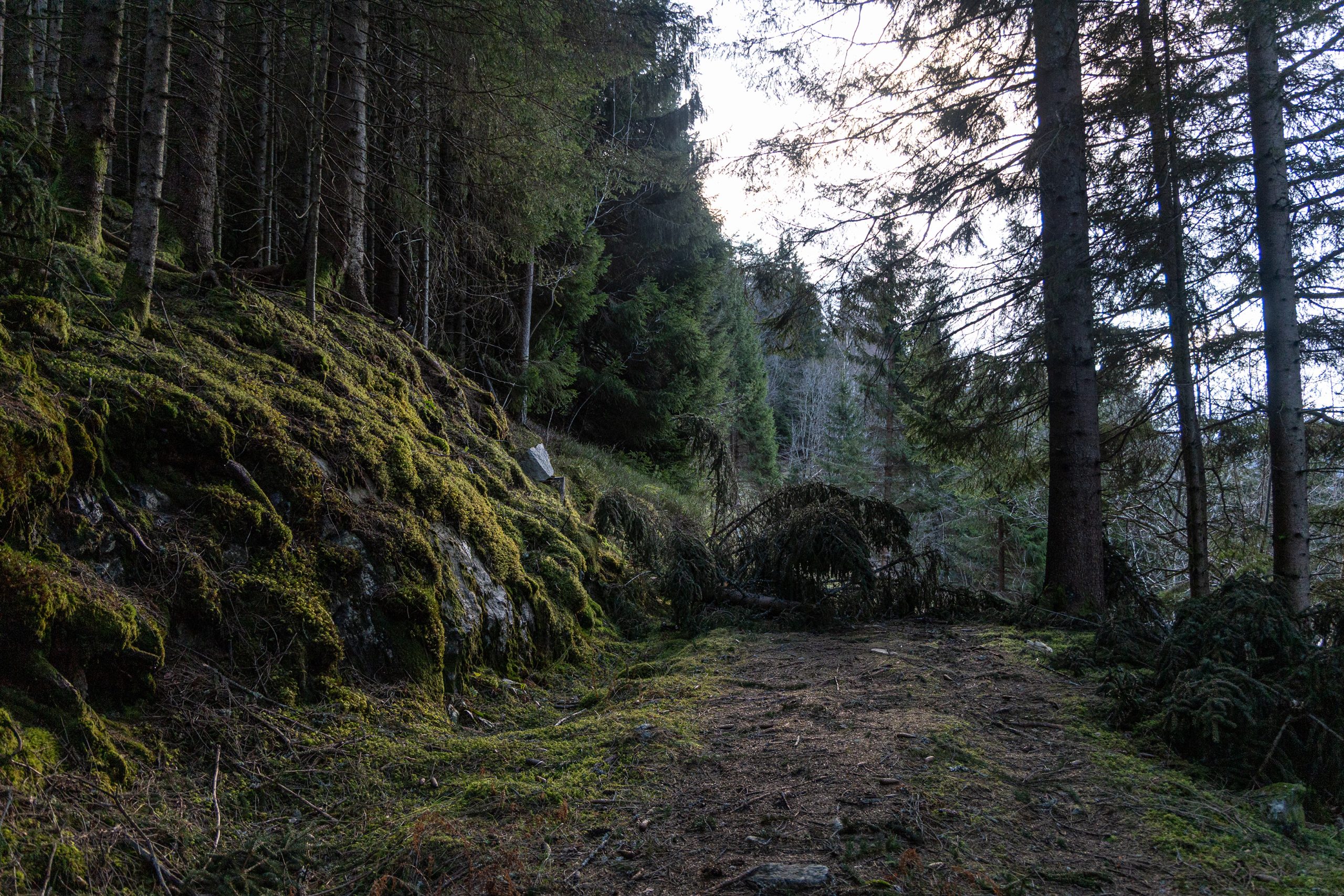 So I crossed the Hardangerbrua Bridge, turned right in the tunnel at the roundabout (yes, Norwegian tunnels have roundabouts), and found myself in Ulvik. It was still dark, but that would soon change. The route to Kristinuten, where my legs were supposed to lead me, began at the kindergarten parking lot. I left the car there and set off. Initially, along the main street running through the town, then along the Gauro River flowing down from the mountains, I passed orchards stripped of leaves and fruit and a few buildings, before finally climbing higher and entering the forest.