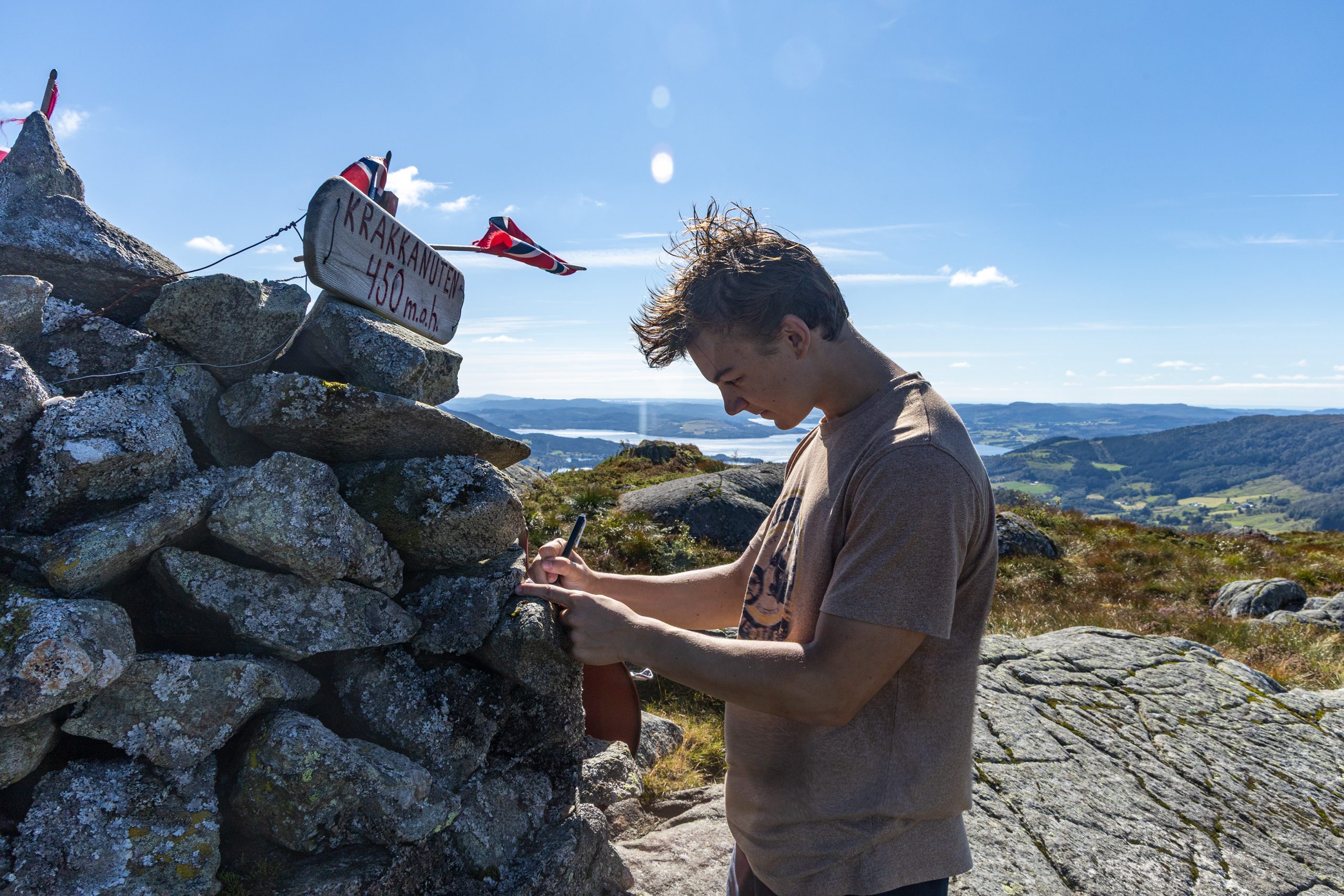 The very next day after returning from Preikestolen, I dragged Tymek on another hike. This time, a much closer one. I wanted to wait at least one day to get some rest, but the weather forecast didn’t leave us time to recover. It was supposed to rain the next day. So the decision was made. I also decided that we would go to nearby Krakkanuten, which I’d already climbed several times, and Tymek had climbed there once himself. It was supposed to be a time travel experience for him. He admitted that he didn’t remember much from that previous time. It’s no surprise, though, as it happened 10 years ago, when he was only four / five years old. The only memory he had was about eating an apple at the summit and that’s why he packed another apple for this trip. I thought I’d take a comparison photo once we reached the top.