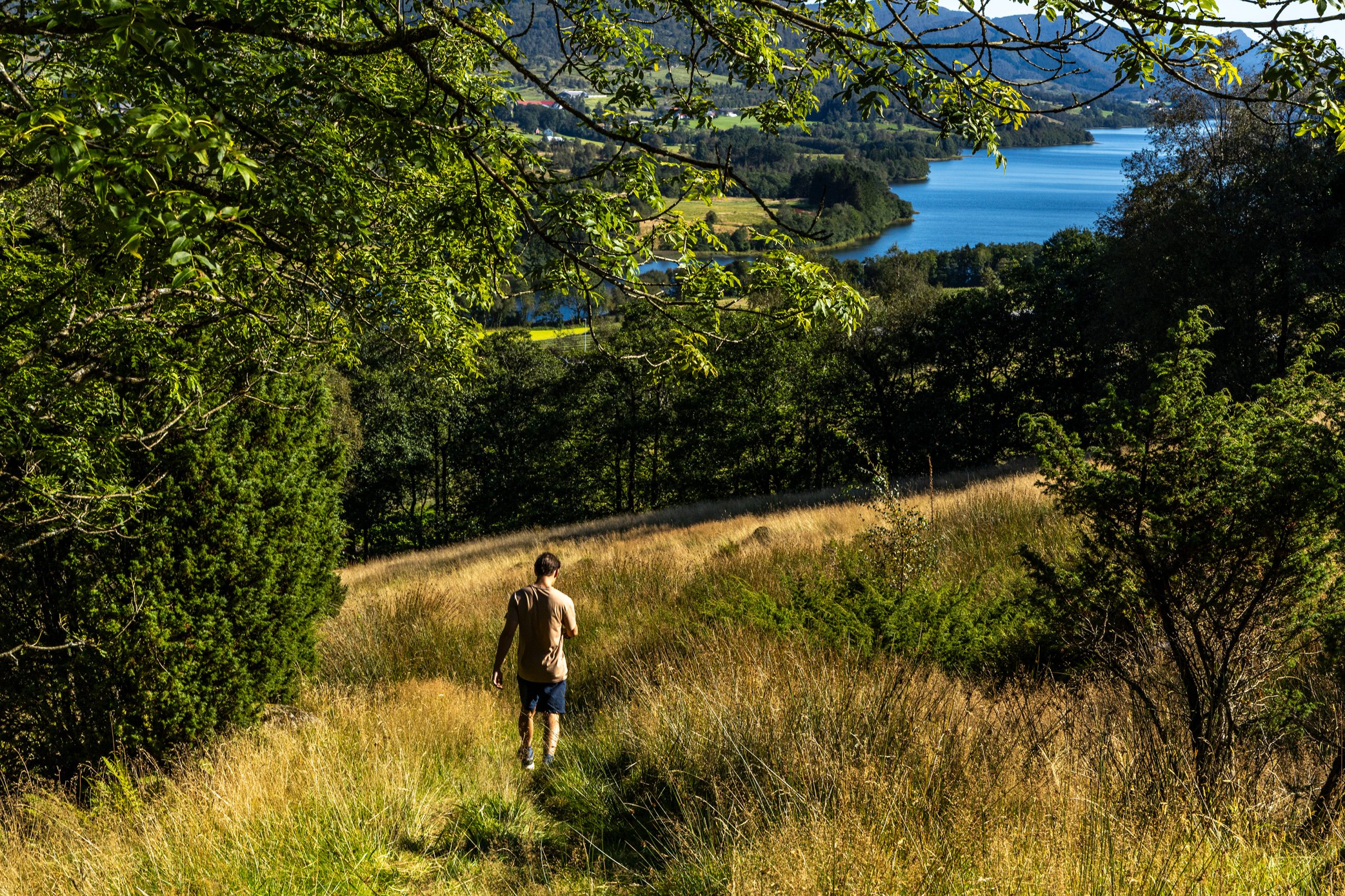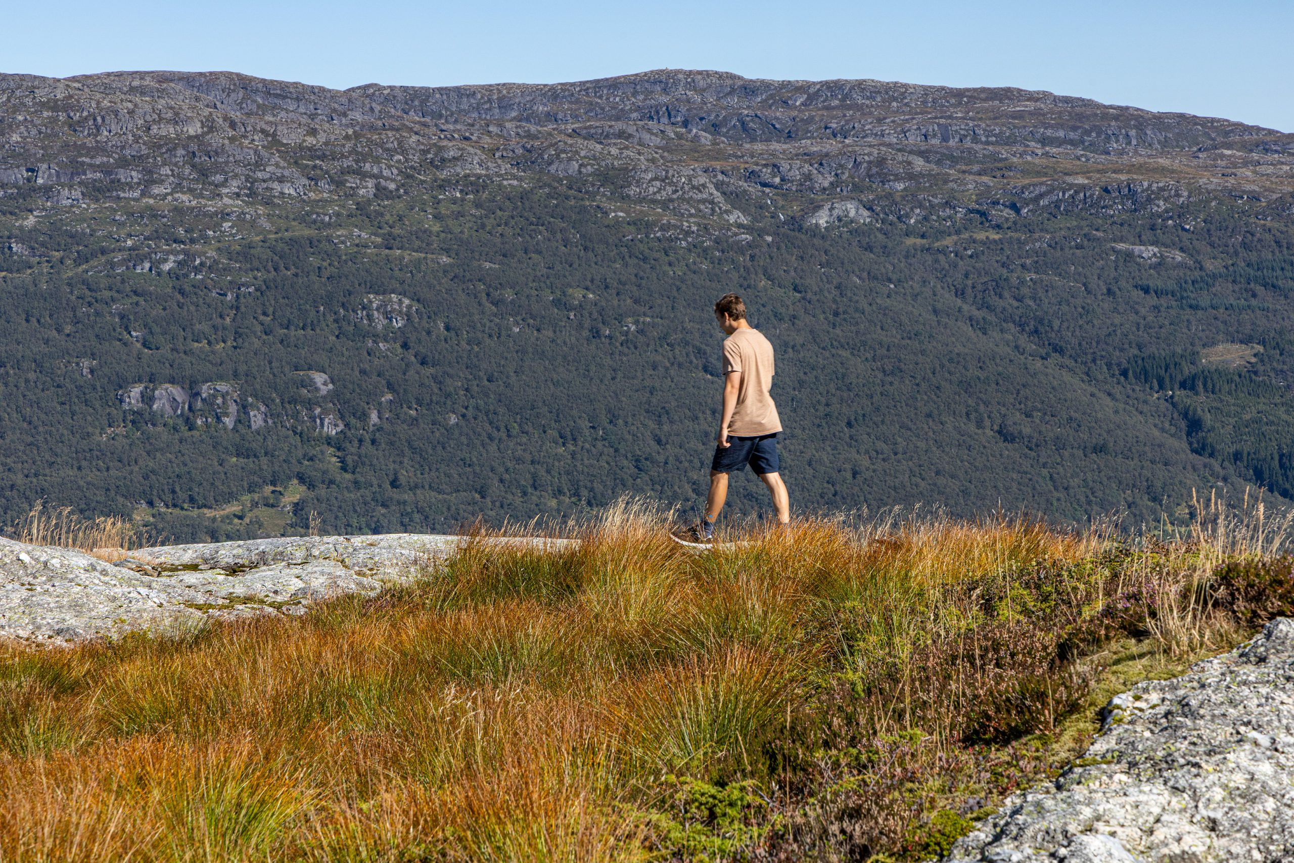 We headed to the parking lot at Øvre Vats bedehus. From there, along the asphalt sidewalk alongside the E134 road, we reached the beginning of the trail. It passed through someone’s farm and disappeared into the forest. The route wasn’t very long, but the gradient took its toll, and soon I was panting like a locomotive. Tymek hadn’t brought his backpack again and was leisurely marching along without any load, trailing me by at least a dozen meters. When he stopped occasionally to wait for me, I could see a mocking smile on his face. Yes, yes, he was telling me without words, I’m young and in much better shape, and I don’t get tired like you, old man. Ah, these young people these days, no understanding of their elders.